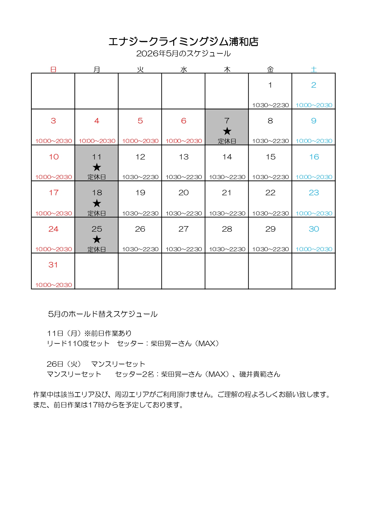 お知らせNEWS 2026.02.13エナジーより柏店サイトリニューアルのお知らせ 2026.02.03柏店柏店<回数券SALE>のお知らせ 2026.01.27柏店エナジークライミングジム柏店「大改革」 2025.12.27柏店年末年始の営業時間についてお知らせです 2025.12.27浦和店年末年始の営業時間のお知らせ 2025.12.24柏店柏店イベント「マンスリーBINGO」開催中! 2025.11.19柏店イベント「愛とクライミングだけが友達さ♪」終了のお知らせ 2025.10.02柏店<柏店>イベント「秋のパン祭り」開催のお知らせ 2025.09.10柏店イベント「愛とクライミングだけが友達さ♪」開催のお知らせ 2025.07.04柏店キッズボルダリング<サマースクール>のお知らせ※お申込みは終了しました 2025.05.21エナジーより一部料金改定のお知らせ 2025.05.20柏店<柏店>ポップアップイベント「gekko japonicus」展示販売会のお知らせ 2025.04.09柏店<柏店>イベント「春のパン祭り」開催のお知らせ 2025.01.14浦和店「年パス10%OFF」キャンペーンのお知らせ 2024.12.04柏店年末年始の営業についてお知らせ 2024.12.04浦和店年末年始の営業についてお知らせ 2024.10.01柏店コンペ「プリンセス35」競技規則 2024.10.01柏店コンペ「プリンセス35」タイムスケジュールのお知らせ 2024.09.12柏店コンペ「プリンセス35」参加者リスト(10/4) 2024.09.03柏店コンペ「プリンセス35」申し込み受付中 2024.08.21エナジーより一部料金改定のお知らせ 2024.08.08柏店コンペ「プリンセス35」開催のお知らせ 2024.04.03柏店イベント「STAFF GENERATIONS」お知らせ 2024.01.19柏店イベント「マンスリーBINGO」1月も継続開催中! 2023.12.23浦和店浦和店 定休日変更のお知らせ 2023.12.20柏店イベント「マンスリーBINGO」開催中! 2023.10.17柏店コンペ「THE CHALLENGE 2023」レポート 2023.10.15柏店コンペ「THE CHALLENGE 2023」最終リザルト 2023.10.15柏店コンペ「THE CHALLENGE 2023」オープンマスタークラス予選リザルト 2023.10.15柏店コンペ「THE CHALLENGE 2023」スーパーミドルクラス予選リザルト 2023.10.15柏店コンペ「THE CHALLENGE 2023」ミドルクラス予選リザルト 2023.10.15柏店コンペ「THE CHALLENGE 2023」ファンクラス予選リザルト 2023.10.14柏店柏店コンペ「THE CHALLENGE 2023」最終エントリーリスト 2023.10.11柏店コンペ「THE CHALLENGE 2023」開催に伴うお知らせ※重要※ 2023.10.05柏店柏店コンペ「THE CHALLENGE 2023」開催要項・競技規則のお知らせ 2023.10.05柏店柏店コンペ「THE CHALLENGE 2023」タイムスケジュールのお知らせ 2023.09.29柏店柏店コンペ「THE CHALLENGE 2023」募集クラスについてお知らせ 2023.09.12柏店柏店コンペ「THE CHALLENGE 2023」申込み開始のお知らせ 2023.09.01柏店コンペ「THE CHALLENGE 2023」開催のお知らせ 2023.08.18浦和店2階ボルダーエリア エルソル ホールド替えしました! 2023.08.12浦和店オートビレイ機が追加されました 2023.08.08浦和店リード85度壁ホールド替え完了 2023.08.06柏店コンペ「プリンセス35」無事終了しました 2023.08.06浦和店エナジーナイトミニセッション1 2023.08.03浦和店ミニイベント開催 2023.08.03柏店コンペ「プリンセス35」エントリーリスト 2023.08.03柏店コンペ「プリンセス35」開催に関するお知らせ 2023.08.01エナジーよりホームページリニューアルのお知らせ 2023.07.30浦和店お盆の営業案内